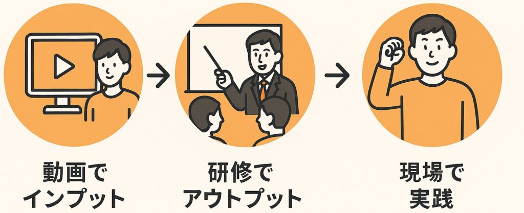 知識の吸収は事前動画でいつでも好きな時間に学べます。